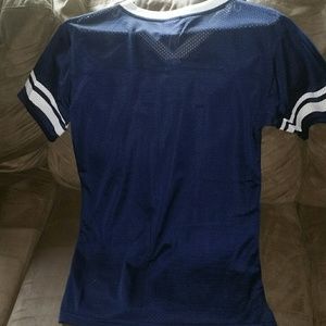 This jersey is in excellent condition, pretty much like new. It is a size small, but it runs pretty big. It's such a cute jersey with sequins for the New England Patriots emblem. I wish I didn't have to sell but it's just a little too small since I'm very busty. This is the perfect shirt to represent your team and still look cute.