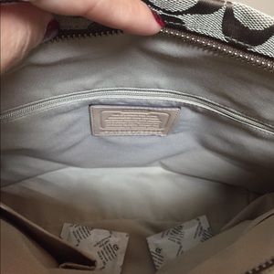 ⏰SOLD❌BEAUTIFUL PINK STRIPE BRIWN C DESIGN OUTTER POCKET, POCKET W ZIPPER AND 2. CEL POCKETS