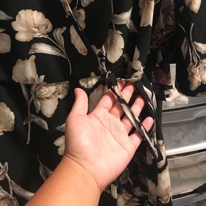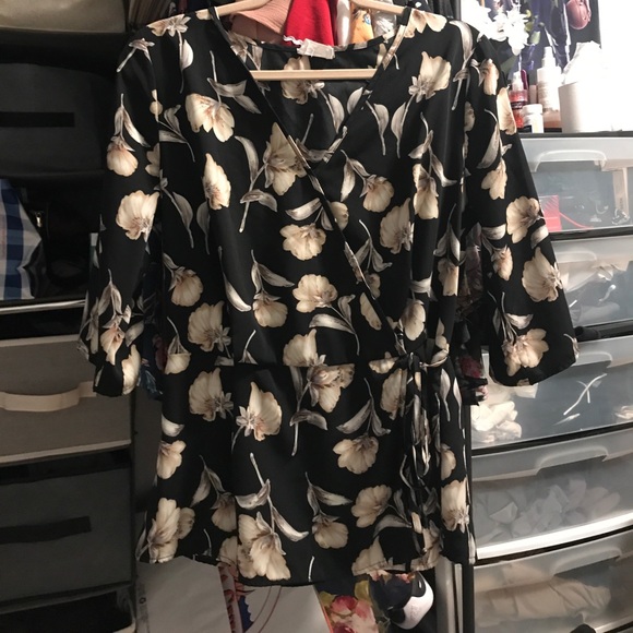 Black 3 quarter sleeve blouse. Cross over with a tie on the side. Flares out at the bottom. Super cute. Worn 2x. Like new.