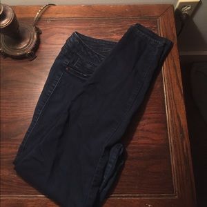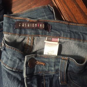 The blue skinny jeans are Blue Star and the other skinny pair are Fashion Nova. Worn jeans about 3-4 times. Fashion Nova jeans has a straight line mark around the thigh that actually came in the mail like that for some reason but other than that they are in ok condition (: TAKE BOTH PAIRS LOL