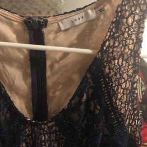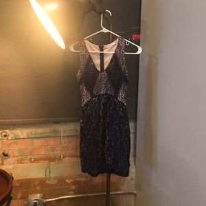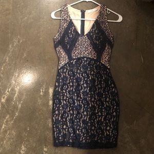 Very flattering dress! Body con. Navy blue and cream color— lush brand!