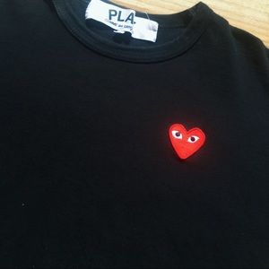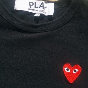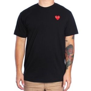 Authentic black CDG graphic tee with embroidered heart logo crafted from ultra soft cotton