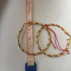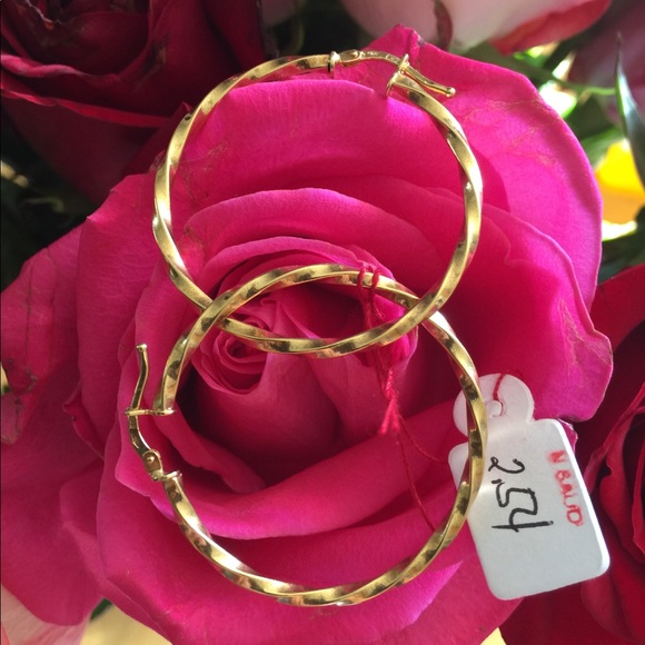 18k Solid Saudi Gold Pawnable twisted hoop earrings. 2.54 grams about almost 4 cm. Item may look bigger in the pictures than in real. Please check the grams. Very beautiful piece. Please check the pictures