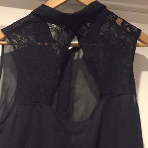 Open back shear black top with lace. Perfect to dress up or down