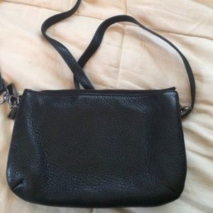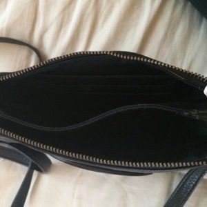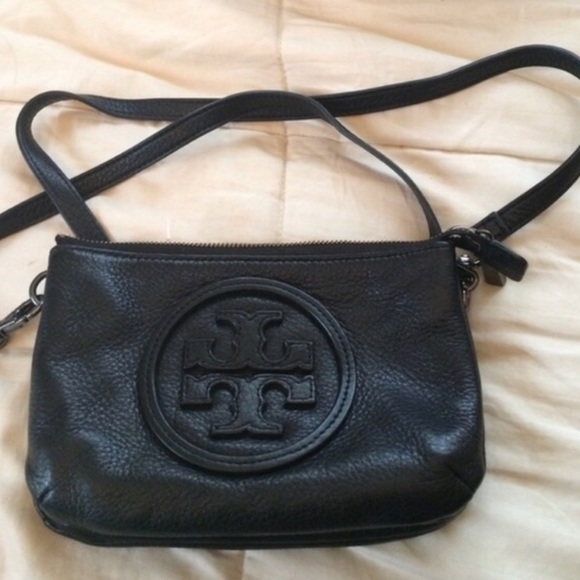 Authentic Tory Burch Crossbody bag. Measurements: 4.5 x 7 in, 20 inches for strap. There are makeup stains inside the bag. Some tarnish on the Zipper.