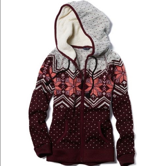 American Eagle Burgundy Fall Sweater, size small, holiday/fall design, nice thick and warm hoodie, Great condition