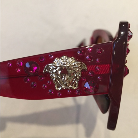 You are viewing a pair of Versace sunglasses, these glasses are brand new and 100% authentic. These glasses have a lightweight red plastic frame with