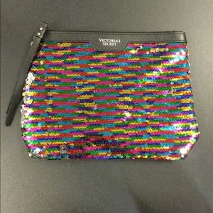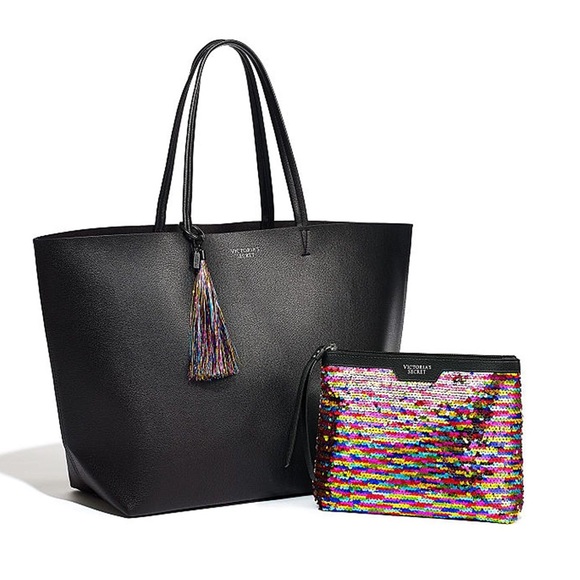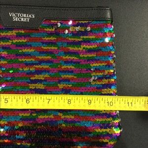Victoria’s Secret tote with awesome and colorful sequin clutch. Clutch matches tassels on tote. Measurements shown. Selling as a set. Great bargain!