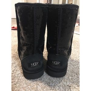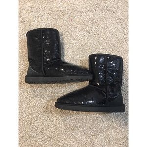 Authentic UGG Australian this are a perfect boots black sequins USED TWICE no more, there is NO missing sequins💛 this baby’s are more than a perfect condition, price is firm this are just like a new boots excellent condition SIZE: 7