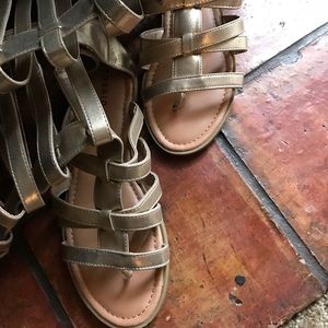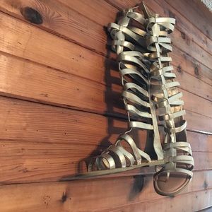 Gold gladiator sandals. Like new and has only been worn once. Wide width and wide calf. Great for someone that has thicker ankles as well.