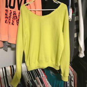 Bright yellow off the shoulder sweatshirt