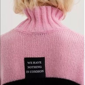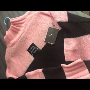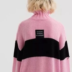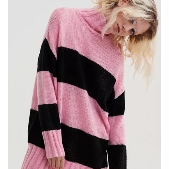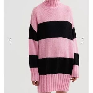 Brand new pink and black striped sweater from lazy oaf in size large. So long it can be worn as a dress almost.