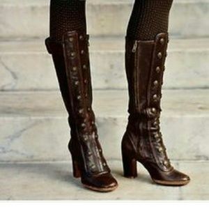VERY good condition Frye Adrienne button boot in brown. Very hard to find, especially in such great condition!