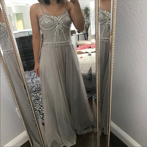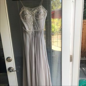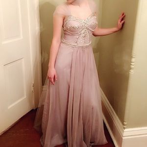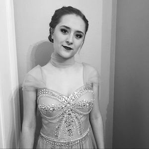 Gorgeous sequined prom or Pageant Dress. Worn 2 times. It’s got such a great vintage look and the last couple pictures I added removable sleeves (not on anymore). Size 2-4.