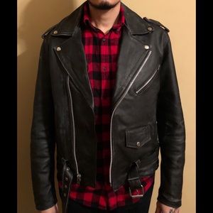 Clearing up my closet. Worn only 5 times, twice only on a bike. Leather still smells like new. Added some distressing to make it look worn but it’s in like new condition. No rips. This is a heavy duty, durable jacket. Can be worn on and off the bike.