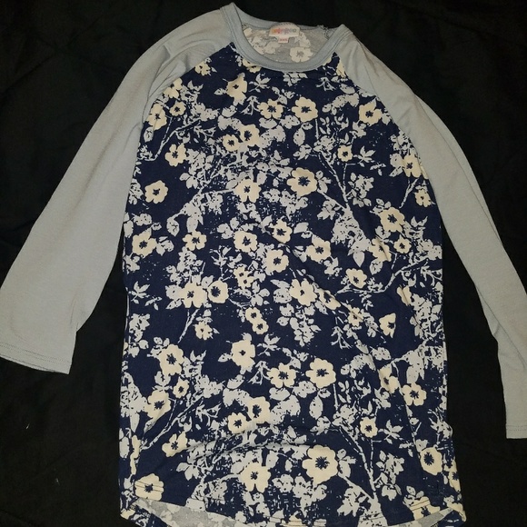 Dark blue with yellow flower print. Light grey/blue sleeves. Worn once.