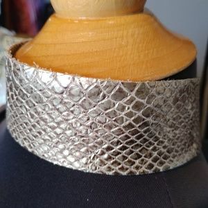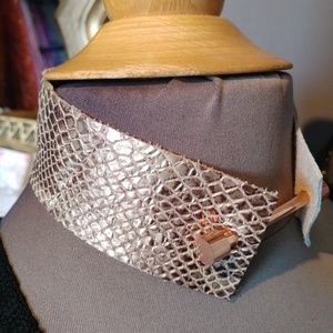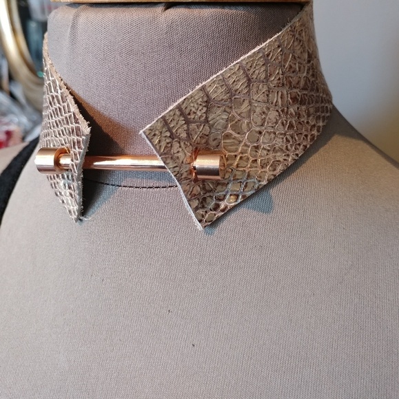 Embossed gold leather necklace. Accented w/ rose gold bar, best for a slim neck.