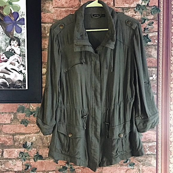 Lightweight, army green, utility jacket. I bought this and never wear it, but it’s super cute!