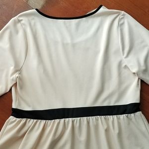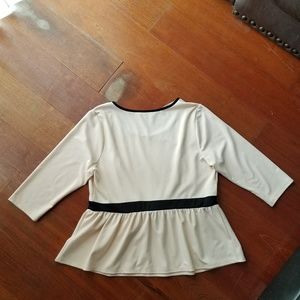 Forever 21+ Pale Pink Peplum Top. 3/4 Sleeves and princess seaming and slight gathering for a flattering and slimming fit. Contrast binding around neckline matches built-in bow belt. Poly/spandex blend material allows for easy machine washing and easy, comfortable and stretchy fit.