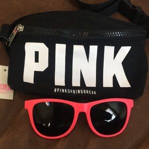 VS PINK black fanny pack with white “pink” graphic and black and neon pink sunglasses. Came as a set, selling as a set. NWT