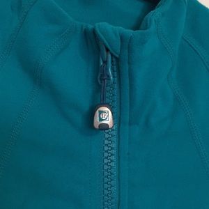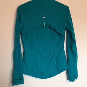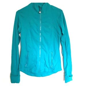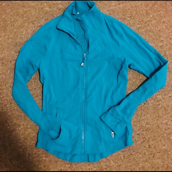 Blue green super comfortable lulu jacket. Mild piling no stains rips or tears. Soooo much life left in this one!