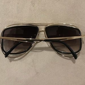 You are viewing a pair of Emilio Pucci sunglasses, these glasses are brand new and 100% authentic. They have a plastic and metal frame, highlighted in gold and black. They have a aviator look with a gradient lens. The come with a generic case. NO TRADES❗️REASONABLE OFFERS ONLY OR IT WILL BE DECLINED❗️