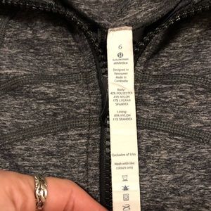 Size 6. Color I believe is inkwell. Very similar to heathered black. No rips no piling or stains . Great condition .