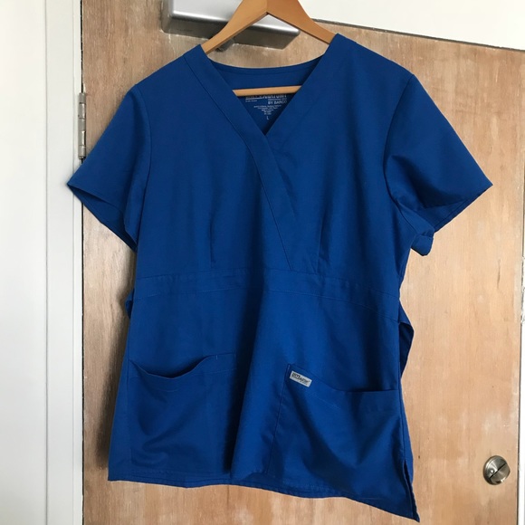 Four scrub tops, 3 greys anatomy and one figs. All size large and in excellent condition!