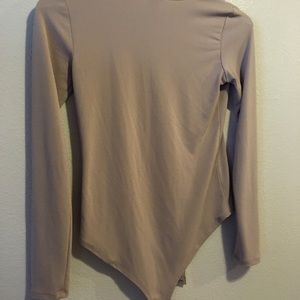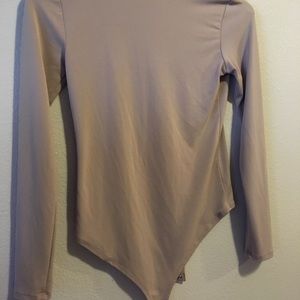 I have only tried this on once and was too small. Perfect condition. Tan/beige body suit size small. Snap bottom, scoop neck, long sleeve.