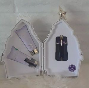 Rare gift set. Comes with 2 fl. oz. refillable perfume, 3.5 oz. Radiant body lotion, and 3.3 fl. oz. Radiant shower gel.