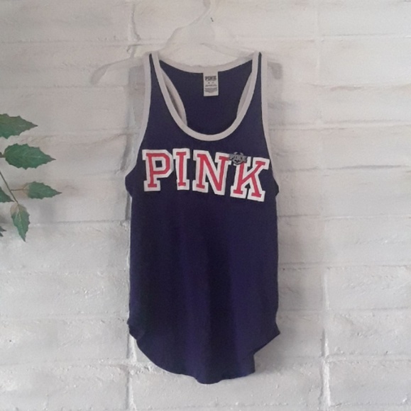 Limited Edition Victoria's Secret Pink muscle tank. Has embroidered Pink logo on corner. Pink graphic is cracking a bit. Worn and machine washed. Otherwise good condition.