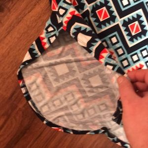 This tunic has so much character. And oh my gosh, it is incredibly soft and bouncy and has slits on each side. It has a loose flowey fit to it as well. This would be super cute paired with white jeans or just plain denim jeans.