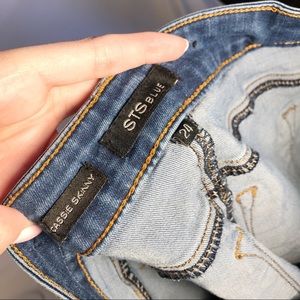 STS Dark Blue Jeans with Distressed Ends •Size 2 / 24” •Gently Used •Make me offers! :) I accept them