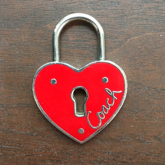 In very good condition! Coach heart lock key chain. 100% authentic. Beautiful vibrant red color and signature Coach script. Some superficial scratching on back from natural wear over time. Hook pulls up and twists out to unlock. Adorable way to show your love ❤️