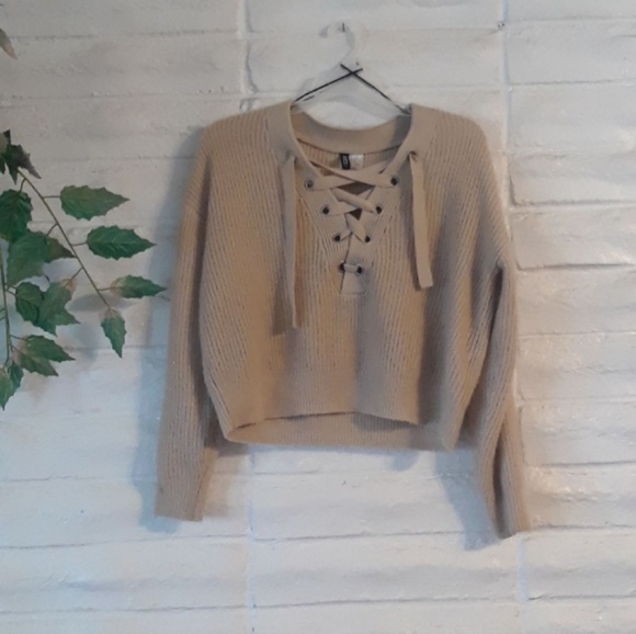 Cute minimal lace beige knit top from H&M. Comfy and stylish. Lightly worn and machine washed. Great condition. Women's size xs.