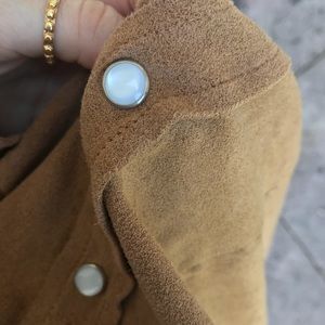 Size xlarge Has one flaw on the back (hole from being burnt) Very soft and cozy Has the cutest little buttons