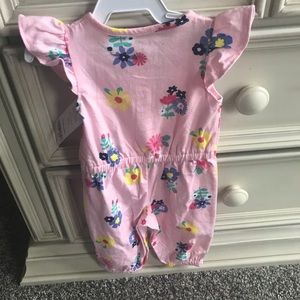 New with tags, baby girl pink onesie outfit with shirt sleeves.