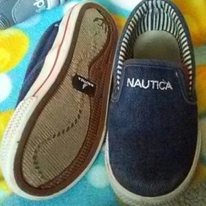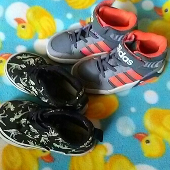 Toddler boys size 7/8 shoes.The Adidas(7) are high tops and are so cute on.The vans(7) glow in the dark which is always awesome!!Nautica slip on shoes (8) are easy to get into.All are in good pre owned condition, and have plenty of life left in them:)
