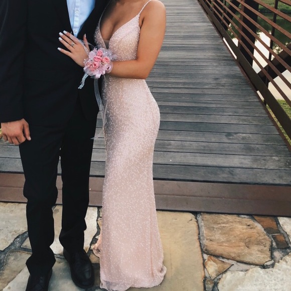 size 00 beaded sherri hill dress. will be available after april 27th! 5’4 with heels, a couple missing beads on the bottom from normal wear. bought from another seller and still in great condition! will sell for $250 off app