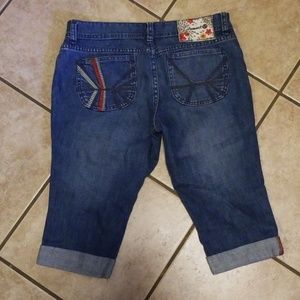 Bermuda shorts with 15 in inseam. Awesome stiching on both back pockets as well as the logo. Small bit of rubbing above front pockets as seen in pics. Really fantastic shape!