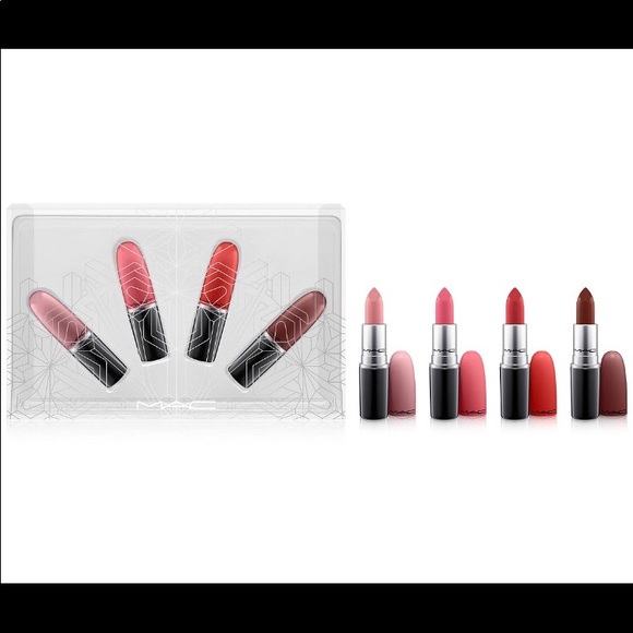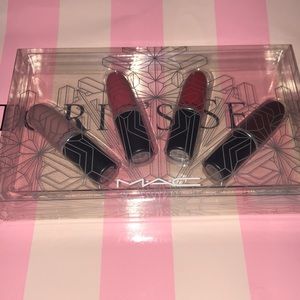 Brand new limited edition MAC lip kit. Never used or swatched. The kit includes 4 full sized lipsticks. A 70$ value. No trades.