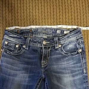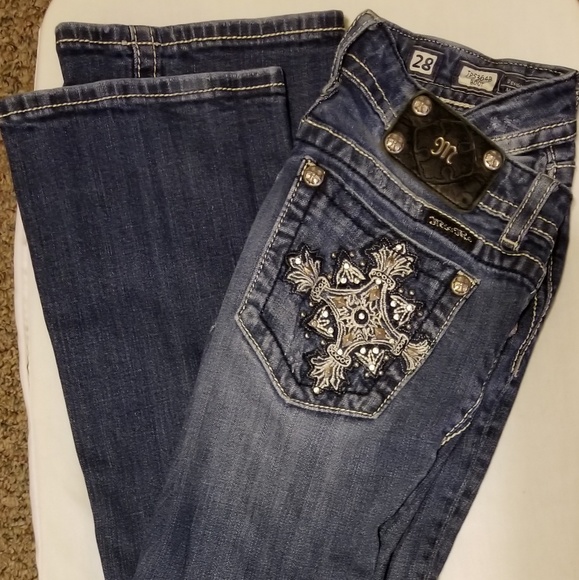 Beautiful women's size 28 Miss Me Bling Jeans, Boot style in gently used condition, They are missing a stud off the leather patch.