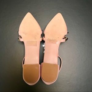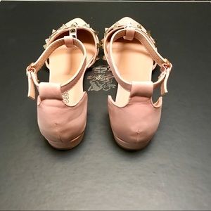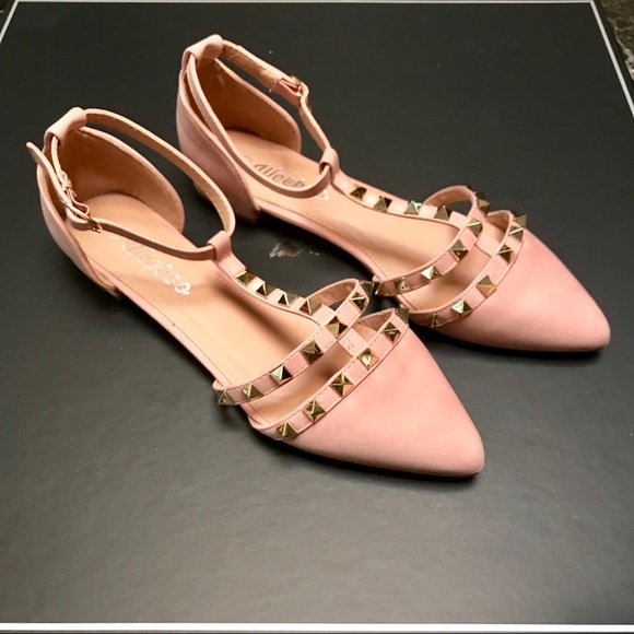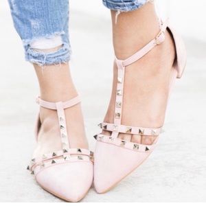 Vegan suede ankle straps sandals. They are brand new. I only tried them on once. Although I really love these shoes, I am re-poshing because they run a little big. I should have ordered a size 5.5. Also, the 1st picture depicts true color of blush on the shoes.