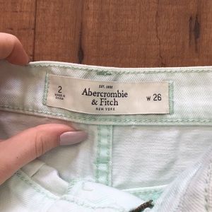 Abercrombie & Fitch high waisted shorts. Never worn! Distressed jean shorts, a very light (almost whitish) teal color. size 2
