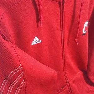 University of Cincinnati, track warm up jacket. ADIDAS Hooded clima warm gear w/zipper and front pockets