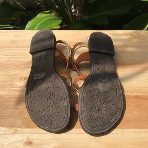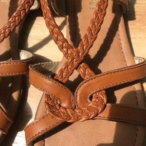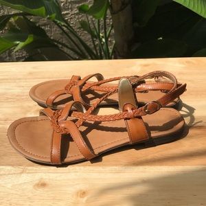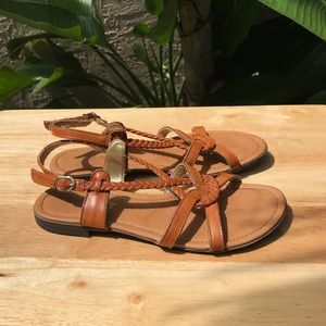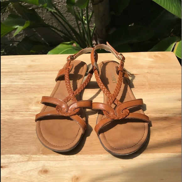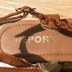 Designed with crisscrossing straps & a cushioned insole, the Garam Sandal delivers fantastic comfort w/ elegant style. Faux leather, ankle strap w/ adjustable buckle, cushioned insole, smooth lining, & a traction outsole. The only sign of wear is the Report label being a bit worn down. There is no sized indicated, but these are 9 in. long. I'm a size 7, 7 1/2, and they hardly fit me, so I assume they're a size 6.