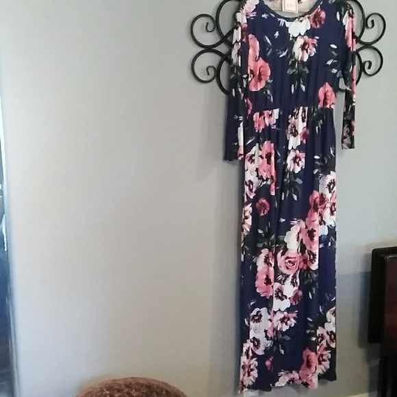 Floral print maxi dress. 85℅ polyester 15% spandex