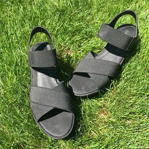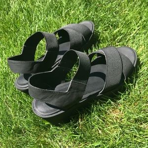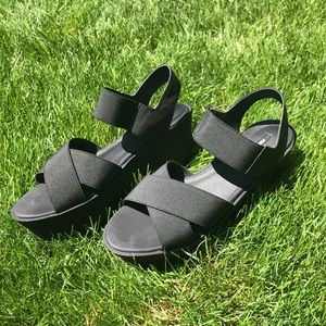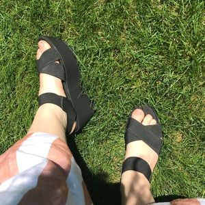 Black platform pumps - never worn! Brand new! Has a soft spongy bottom for your feet and stretchy straps to adjust to your foot! Not actually from urban!