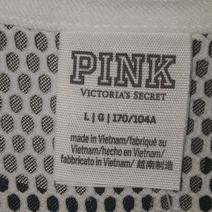 Entirely white meshed Pink top. Never been worn size large.
