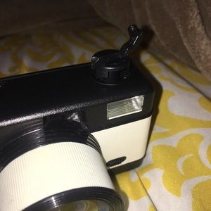 Never ever used before, in perfect condition. I used this for room decoration but it is a functional camera. It does not come with film and battery. It looks like it takes 1 double A battery. Comes with a wrist strap and a lense cover. It’s retail price is $50 and I would like some money back.